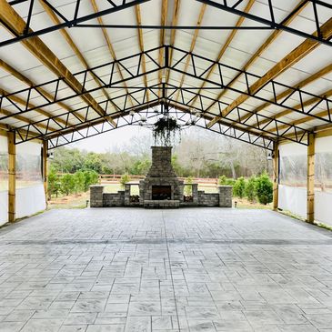 Rain on your wedding day? No problem! Our covered patio features optional side panels to keep your guests comfortable and dry, ensuring your celebration goes on beautifully—rain or shine.