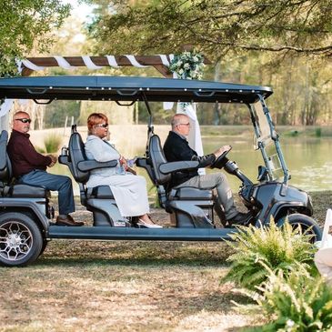 Make getting around the farm part of the fun with our cozy limo golf cart, complete with seating for up to five guests and an experienced driver. Enjoy music on the go with the cart’s built-in speaker system as your wedding party and guests are transported around the property in comfort and style. It’s t